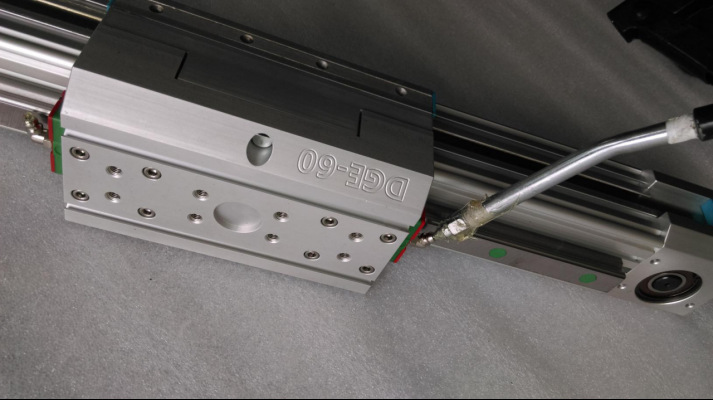 使用線性滑臺模組時潤滑是非常必要的,如果沒有充分的潤滑,運轉時摩擦阻力會增加進而可能會成為縮短產品壽命的主要原因,可依照系統運行速度,使用環境等需求做適當的選擇,潤滑給油的頻率根據使用條件與環境而有所不同,一般情形建議每次運行20km補充油脂一次。