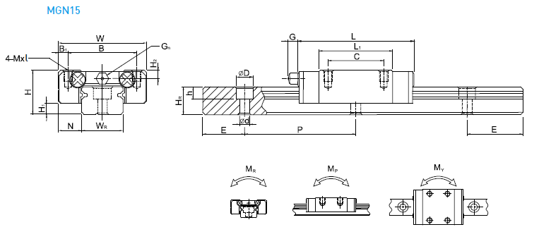 上銀滑塊MGN15H其它參數(shù)如下: